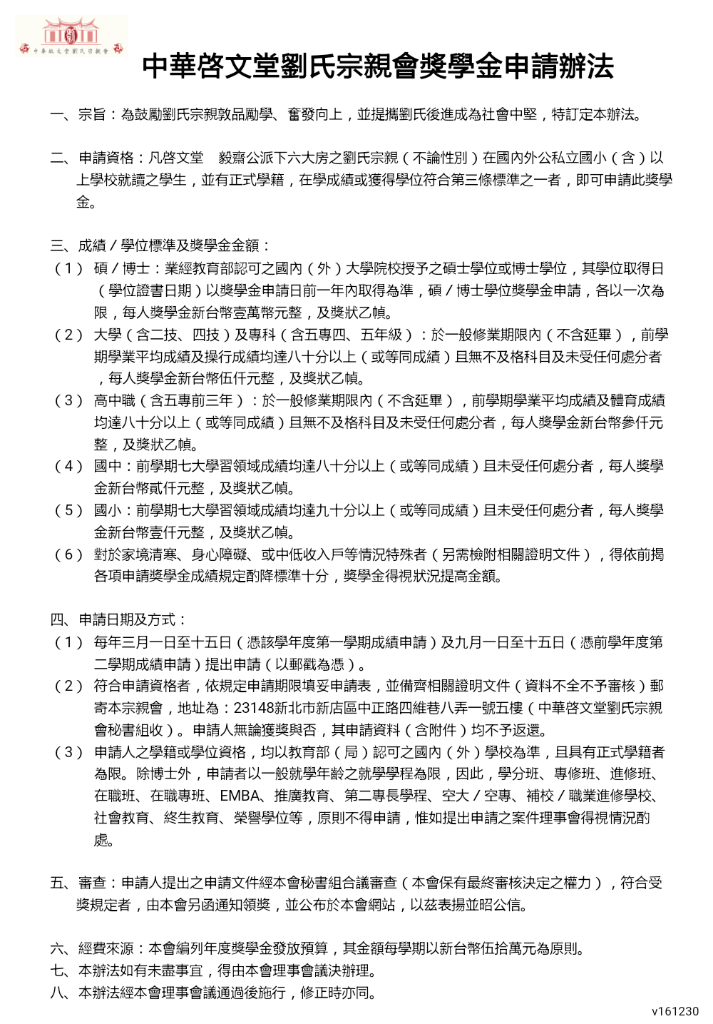 105學年度第一學期的獎學金申請期間為 3/1(三)至 3/15(三),符合資格的宗親請記得要提出申請喔!