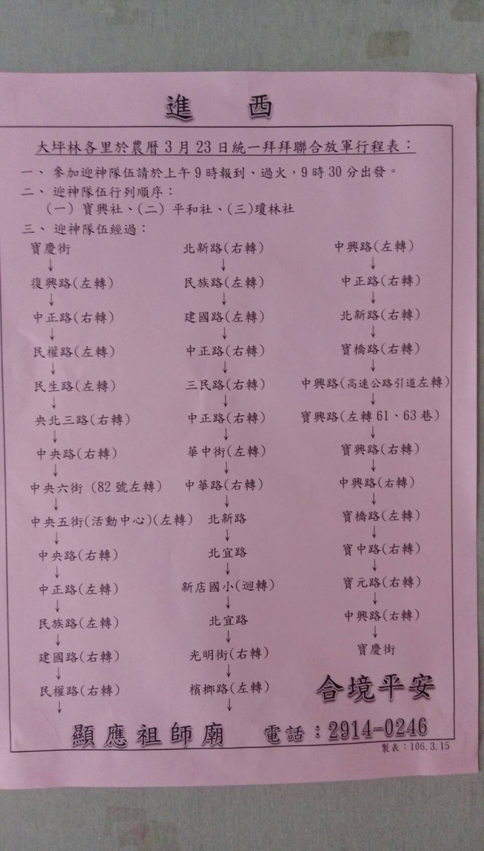 2017/04/19(三)農曆3月23日「新店大坪林 顯應祖師廟」將舉辦「大坪林放軍暨媽祖聖誕千秋」,歡迎宗親們撥冗參加!