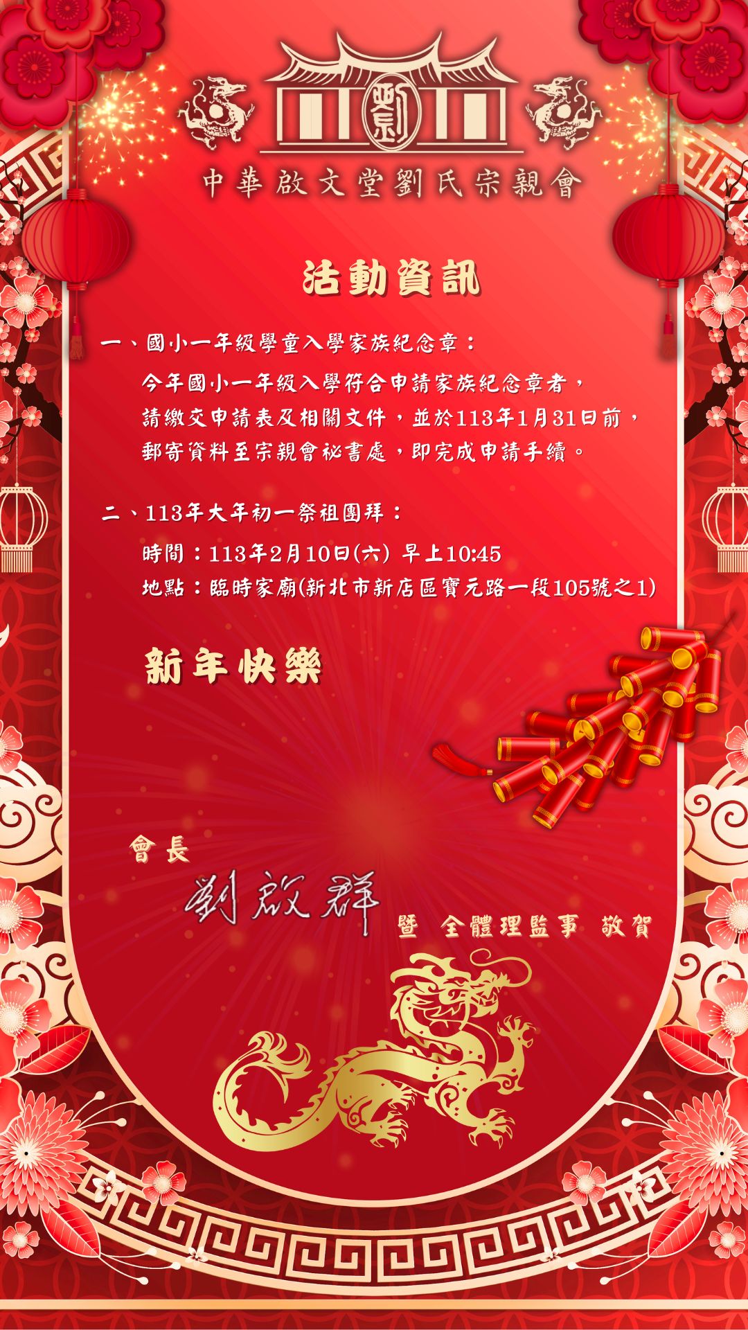 欲申請112學年度奬學金者,"必須"參加大年初一(2/10)10:45分在臨時家廟舉行的團拜,謝謝