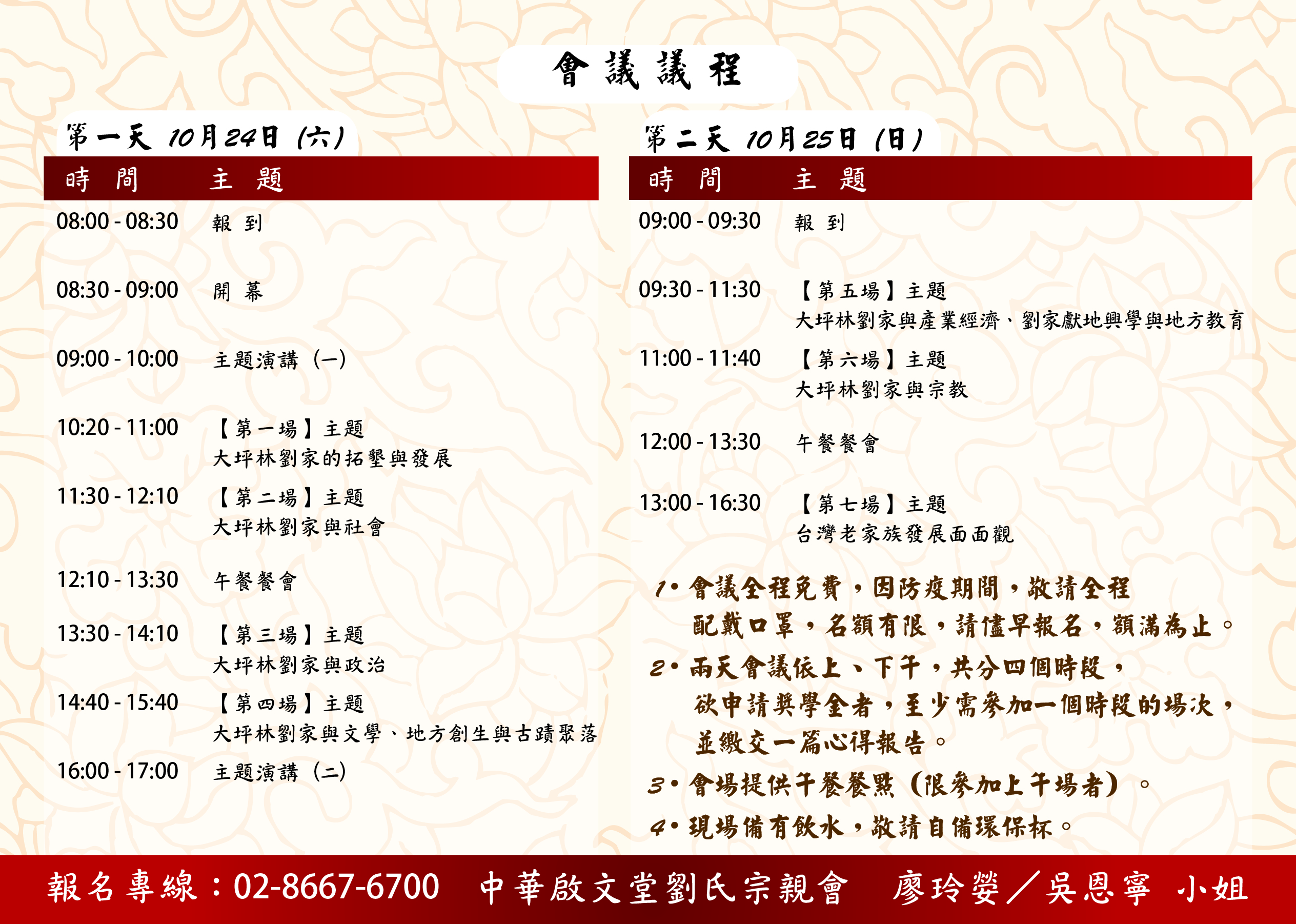 報名專線:02-8667-5371 宗親會 廖玲嫈/吳恩寧 小姐
